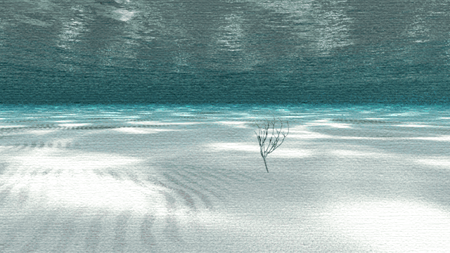 水で満ちたガラスドーム、中には小さな珊瑚礁と、小さな魚