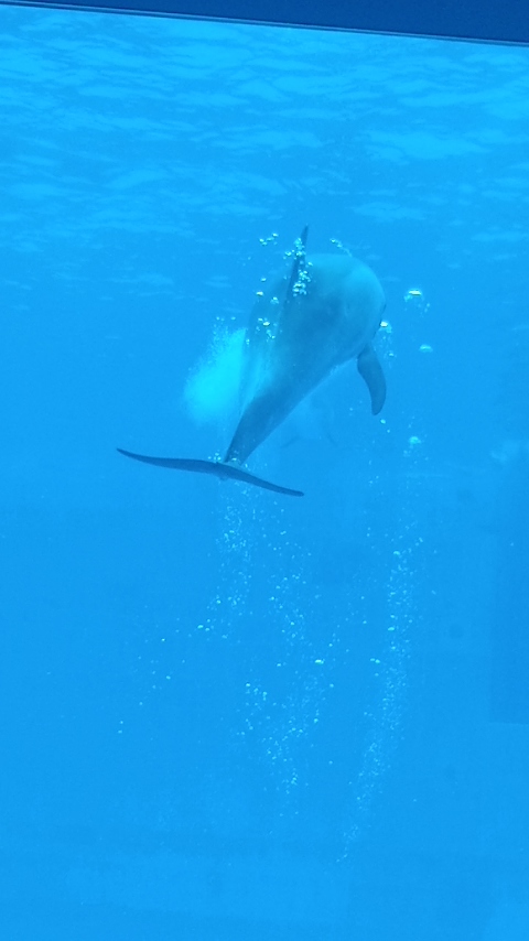 イルカの水槽で、三頭連れだって泳いでたりのんびりくっついたりしてるイルカたちの中に、一頭だけ一人遊びを延々繰り返している子が居て。
